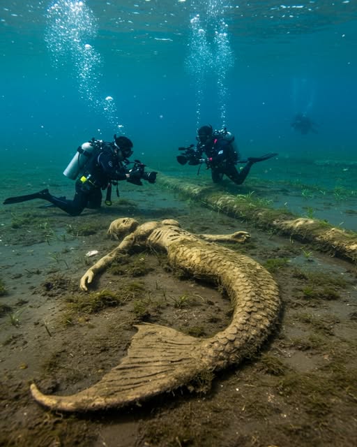 A stunning underwater discovery has sent shockwaves through scientific and online circles: divers have found what appears to be the mummified remains of a mermaid-like creature lying on the ocean floor. This eerie fusion of human and marine features has sparked heated debate — is it an ancient myth brought to life, or an elaborate hoax buried under layers of time? Some experts suggest it could be a new aquatic species, while others propose it points to forgotten civilizations that may have worshiped or even created such beings. One thing is certain — this discovery shatters the line between myth and reality.